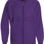 Water repellent, collar with integrated hood, adjustable drawstring on hem, concealed zip, fold-away jacket (K-Way system) in pocket with double zip