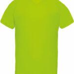 Breathable and quick drying, small V-neck, necktape, raglan sleeves with covered seams, double seams on sleeves and cuffs
