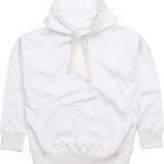 3-part hood with waffle inner lining, natural colored flat cotton cord, double necktape, raglan sleeves, 2×2 rib knit on sleeves and hem with elastane, kangaroo pocket, flatlock seams, roughened inside, TearAway label