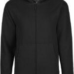 2-layer hood without cord, ribbed cuffs on sleeves and hem, YKK zip, kangaroo pocket, roughened inside