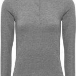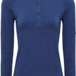 Round neckline with 3 buttons, roll-up sleeves with button and tab fastening to the upper arm, rib knit cuffs and hem