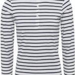 Round neckline with 3 buttons, roll-up sleeves with button and tab fastening to the upper arm, rib knit cuffs and hem