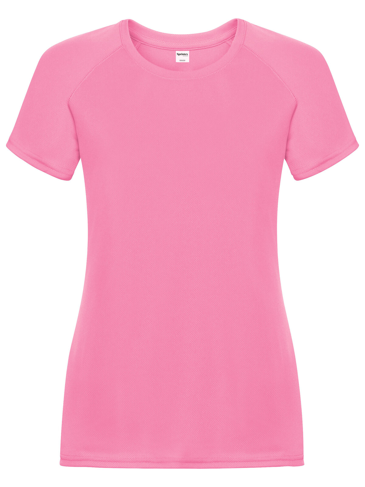 100-odstotni poliester z mikrodelci. Raglan majica s kratkimi rokavi, ploski šivi, rahlo razširjena, s stranskimi šivi. Etiketa za odlepljanje.